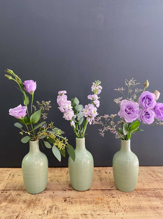 CONJUNTO DE 3 MINI JARRONES CERÁMICA VERDE